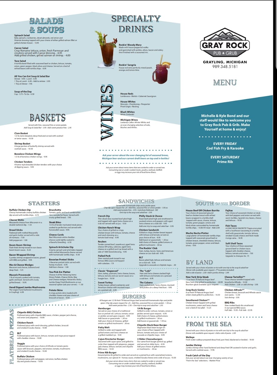 Welcome to Gray Rock Pub & Grub, a hidden gem nestled at 2123 Industrial St in Grayling, MI. This inviting establishment offers a casual dive bar atmosphere, perfect for unwinding after a long day. Known for its friendly service and mouthwatering offerings, Gray Rock Pub & Grub has quickly become a go-to spot for locals and visitors alike.